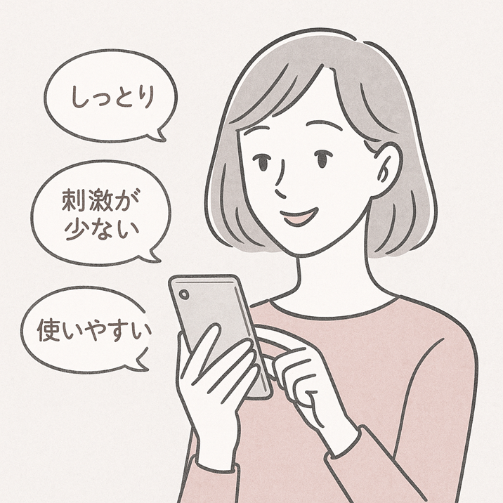 私も、香りや刺激が少ないことで“肌を休ませながらケアできる”感覚がありました。