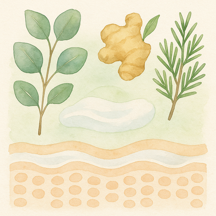 「ユーカリエキス」「ショウキョウエキス」などの植物由来保湿成分でうるおい補給
